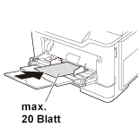 Legen Sie Umschläge bzw. Postkarten mit der Druckseite nach oben in die Stapelanlage/den Spezialeinzug.