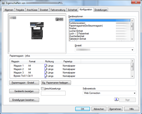 Wenn die OpenAPI-Kommunikation per SSL verschlüsselt ist und die Geräteinformationen automatisch vom Druckertreiber abgefragt werden können, kann das Verschlüsselungskennwort von diesem System abgerufen werden. Ausführliche Informationen zur Verschlüsselung der OpenAPI-Kommunikation per SSL finden Sie Hier.