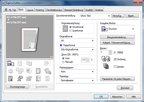 Öffnen Sie das Fenster [Eigenschaften] des Druckertreibers.