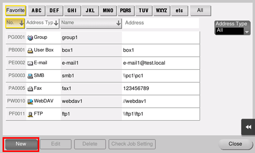 To check the settings for a registered destination, select its registered name, then tap [Check Job Setting].