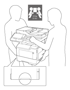 When moving this machine, at least two people are required to do so. To prevent toner from spilling, keep this machine horizontal when carrying it.