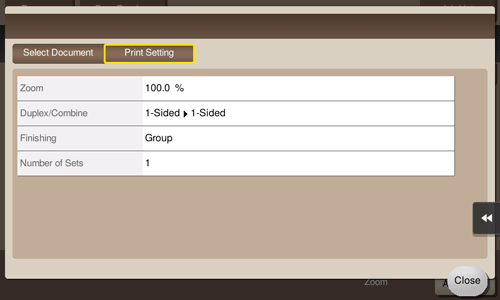 When printing a file from a User Box, you can view the print settings. If necessary, you can view a list of selected files.