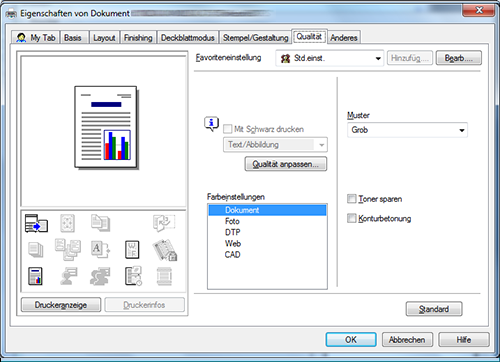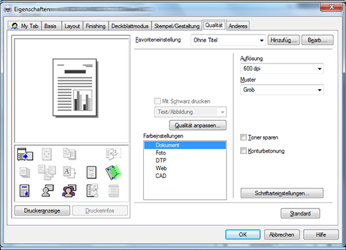 [Toner Save] | Aktivieren Sie dieses Kontrollkästchen, um den Tonerverbrauch zu senken. Die Druckdichte wird verringert. |