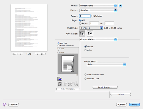 [Printer Information...] | Der Status der Installationsoptionen wird angezeigt. Diese Schaltfläche ist nur aktiviert, wenn der Computer mit diesem System kommunizieren kann. Diese Funktion ist nicht verfügbar, wenn die Sandbox-kompatible Anwendung unter Mac OS X 10.9 eingesetzt wird. |