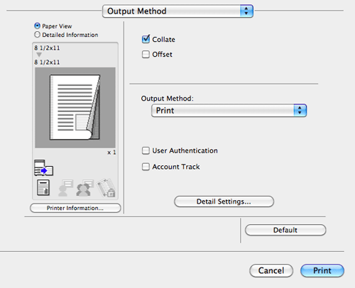 Unter [Output Method] können Sie die Einstellungen für den Druckvorgang einrichten.