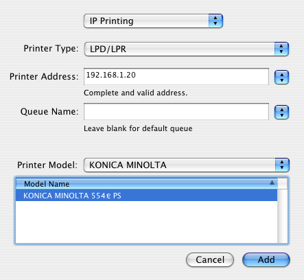 Gehen Sie unter Mac OS X 10.2/10.3 folgendermaßen vor, um einen Drucker mit einer LPR-Verbindung hinzuzufügen: