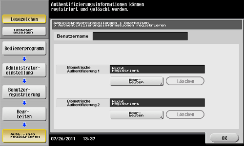 Tippen Sie auf [OK], um das Registrieren der Benutzerinformationen zu beenden.