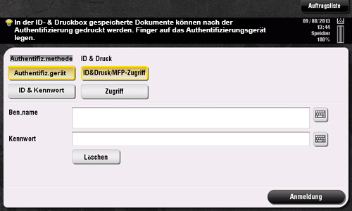 Die Anmeldemethoden variieren je nach Authentifizierungseinstellungen dieses Systems.