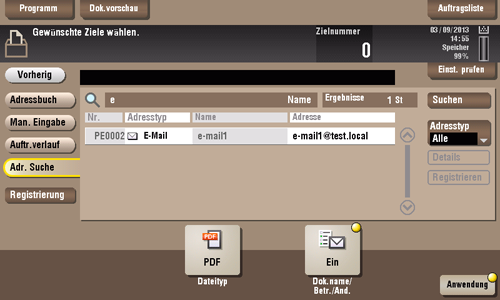 Tippen Sie auf [Suchen], um die Suchergebnisse anzuzeigen. Wählen Sie ein Ziel aus der Liste aus.