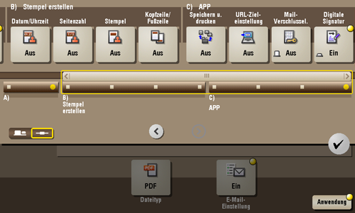 Wenn Sie den Status [Ein] oder [Aus] nicht ändern können, ist davon auszugehen, dass der Administrator festgelegt hat, dass eine digitale Signatur immer hinzugefügt wird bzw. nicht hinzugefügt werden kann.