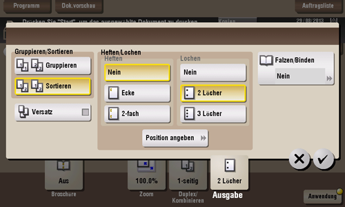 Wählen Sie die Positionen, an denen die Blätter gelocht werden sollen.