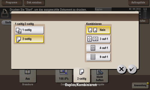Das Original wird entweder auf eine oder auf beide Seiten des Papiers gedruckt.