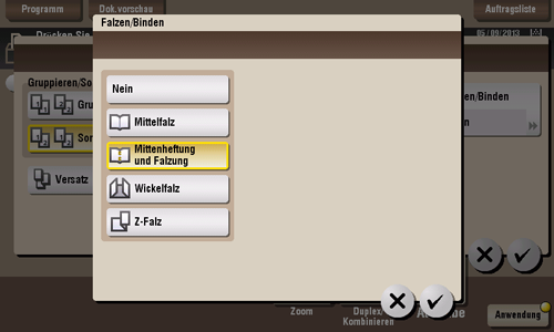 Für die Verwendung der Funktion Mittenheftung und Falzung werden benötigt: