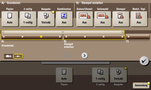 [Stempel erstellen] | Sie können während des Drucks eine Seitenzahl und einen Stempel hinzufügen. |