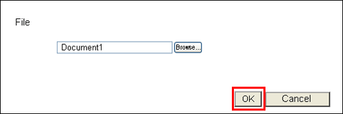 Display a page to upload a file via the Web browser of this machine, then tap [Browse].