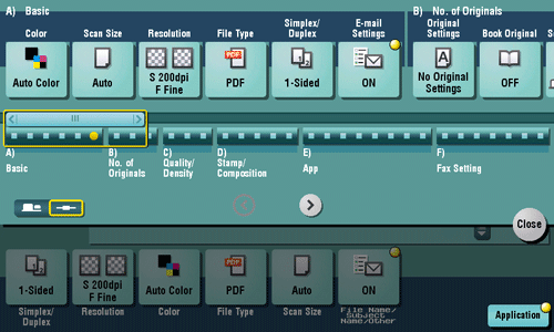 Configure the application option settings, such as notifying the save location of the original data by E-mail, and changing the sender information of the fax.