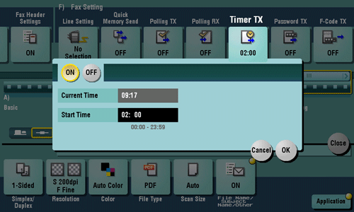 Specify when to start fax transmission. The fax is automatically sent at the specified time.