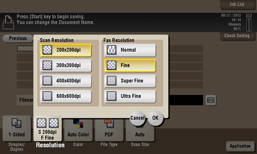 [Fax Resolution] | Select a resolution to use to scan the original for fax transmission. To use Fax TX, Internet Fax, or IP Address Fax, scan the original in the following resolution.