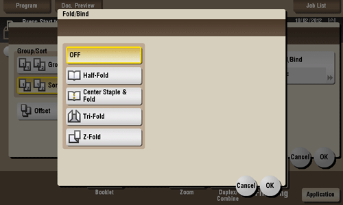 [Z-Fold] | Z-folds the long side of a printed sheet before feeding it out. For details, refer to Here. |
