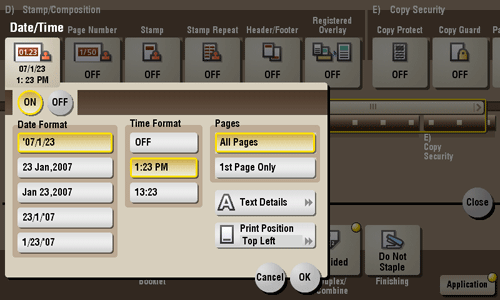 You can select a print position and format, and add the date and time. The date and time can be printed either on all pages or only on the first page.