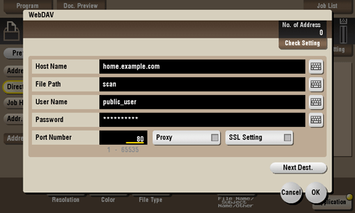 Enter the host name or IP address of destination WebDAV server to send files to the WebDAV server.