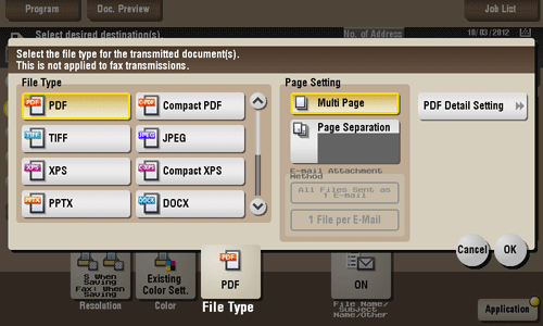 • [Compact PDF]: Used to send a file with a smaller file size than the normal PDF type. We recommend this format when you want to reduce file size to enable sending by E-mail etc.