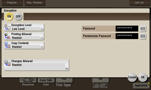 If [Encryption Level] is set to [High Level], you can permit printing of PDF files only in low resolution ([Low Resolution]).
