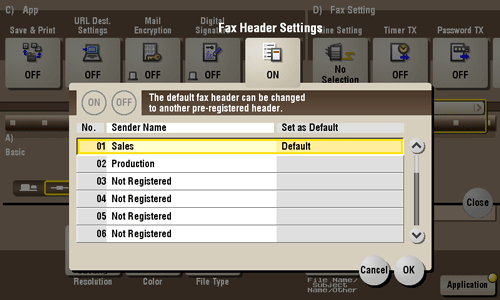 Fax Header Settings