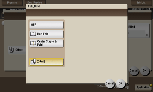 • To use the Z-Fold function, the Finisher FS-535 and Z Folding Unit ZU-606 are required (only for bizhub 554e).