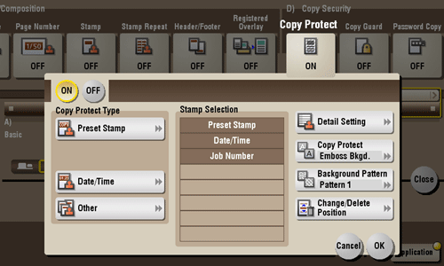 Select [ON] to print the copy protection text.