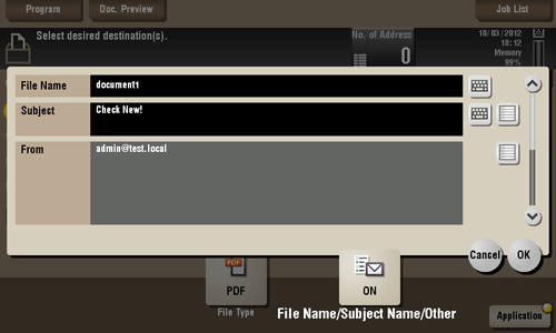 When sending by E-mail, you can specify the subject and message text of an E-mail and change the sender E-mail address ("From" address).