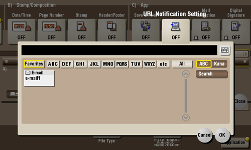 When the SMB transmission, FTP transmission, or WebDAV transmission is complete, an e-mail showing the file storage is delivered to the specified address.