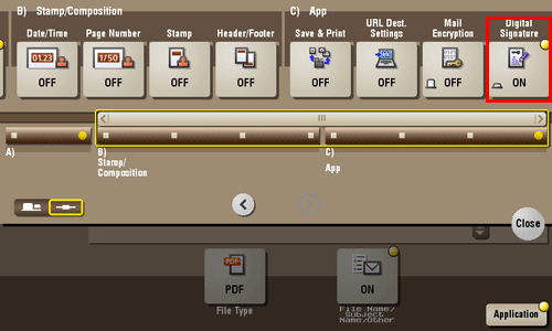 If you cannot change the [ON] or [OFF] state, it is assumed that whether or not a digital signature is always added is specified by the administrator.