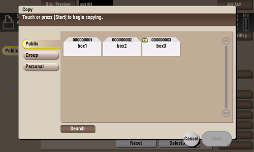 You can select a file and copy it to another User Box. Select the destination Public, Personal or Group User Box.