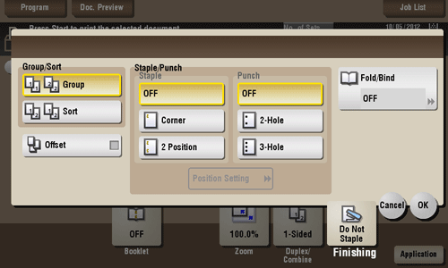 [Punch] | Select binding positions when punching sheets. For details, refer to Here. |