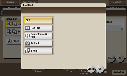 The Finisher FS-535 and Z Folding Unit ZU-606 are required (only for bizhub 554e).