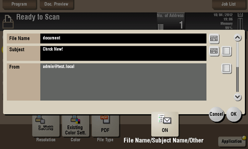 When sending by E-mail, you can specify the subject and message text of an E-mail and change the sender E-mail address ("From" address).