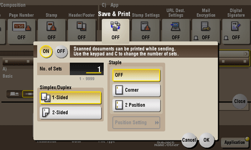 [ON]/[OFF] | Select [ON] to send and print at the same time. |