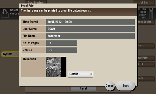 If you tap [Details..] or a thumbnail image, you can rotate or delete a page while checking a file preview image.