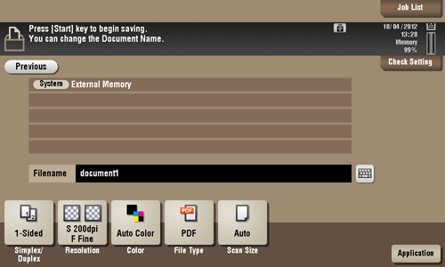 You can set a file name and the storage options when saving the scanned data of an original on an external memory.