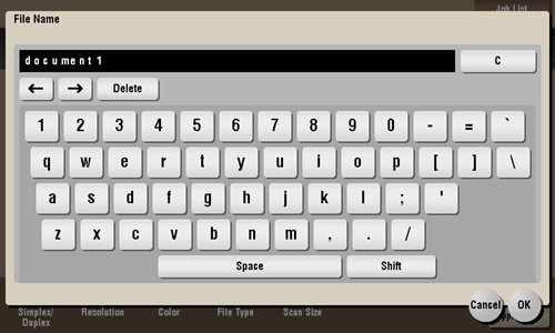 You can set a file name (using up to 30 characters) and the storage options when saving the scanned data of an original on an external memory.