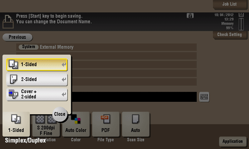 [Cover + 2-sided] | Scans a single side of the first page, and scans both sides of the remaining pages. |