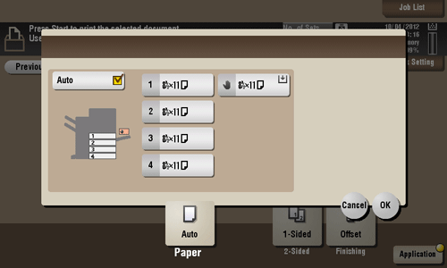 [Auto] | Tap this button to automatically select optimum sized paper for the original before printing. |