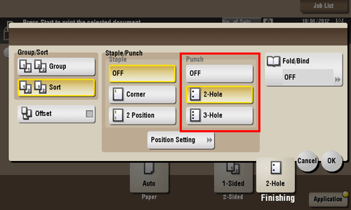 The Finisher FS-534 and Punch Kit PK-520 or the Finisher FS-533 and Punch Kit PK-519 are required.