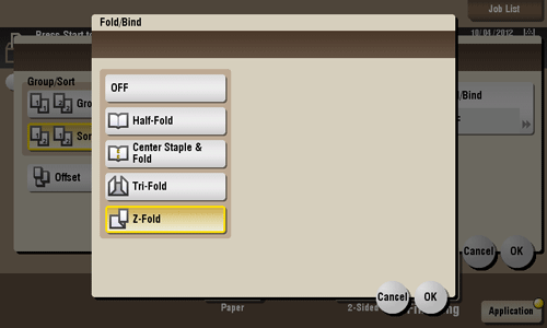To use the Z-Fold function, the Finisher FS-535 and Z Folding Unit ZU-606 are required (only for bizhub 554e).
