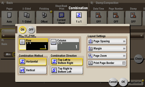 [ON]/[OFF] | Select [ON] to combine pages. |