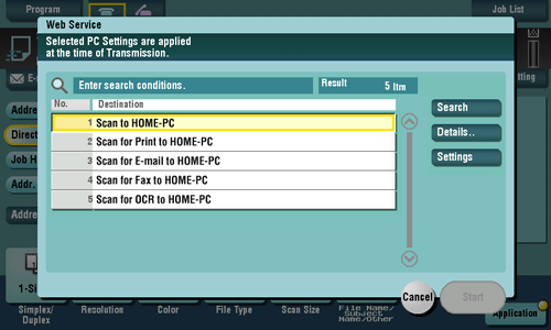 Enter a destination computer when scanned original data is sent to a computer detected by the Web service.