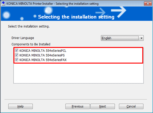 Seleccione la casilla de verificación del controlador de impresora que desee instalar y, a continuación, haga clic en [Siguiente].