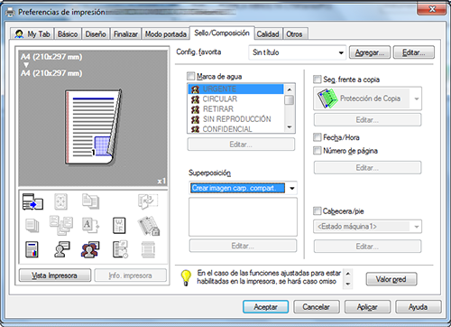 La opción [Superposición] está disponible solo cuando se utiliza el controlador de impresora para Windows.
