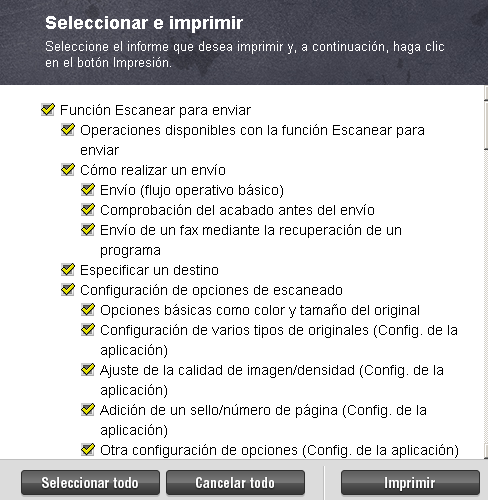 Seleccione las casillas de verificación que desee y, a continuación, haga clic en [Imprimir]; entonces podrá imprimir colectivamente los contenidos seleccionados.